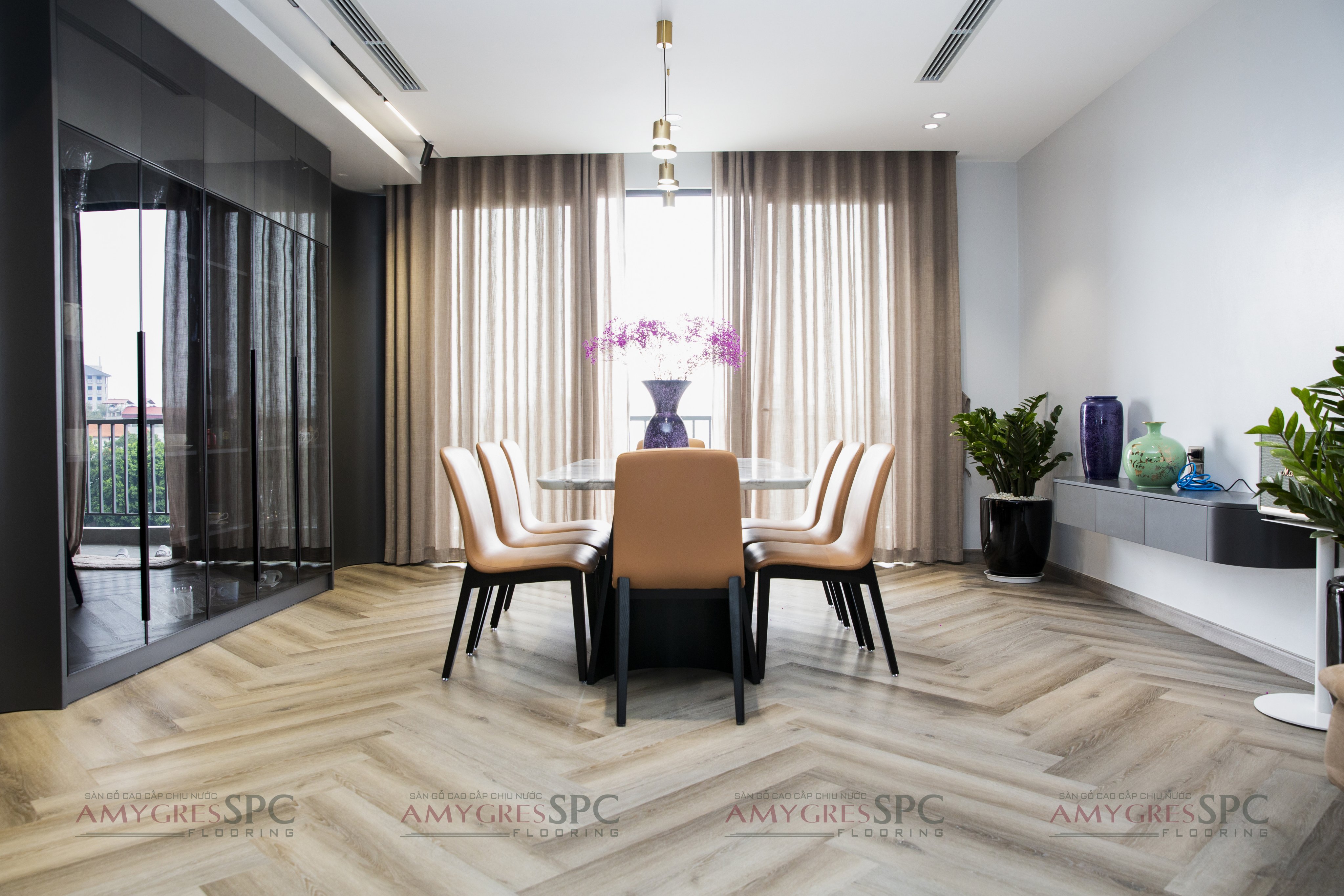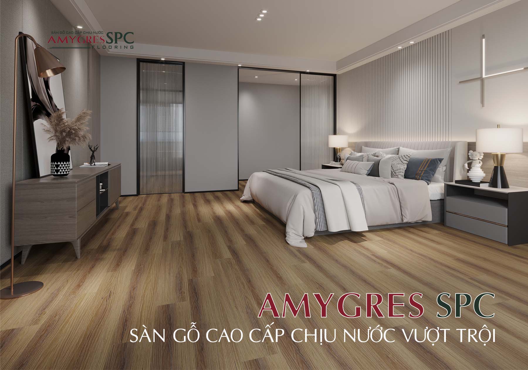Với sàn gỗ AMYGRES SPC chịu nước rất tốt, chống thấm vượt trội, sản phẩm lý tưởng cho gia đình bạn!