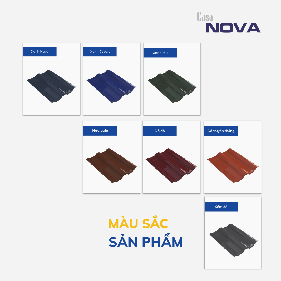 Nhằm mang đến cho khách hàng những sản phẩm đẳng cấp, phù hợp xu hướng kiến trúc hiện đại, AMY GRUPO cho ra đời dòng ngói tráng men cao cấp Casa nova. Sản phẩm mang đủ tố chất của một dòng sản phẩm dành cho một xã hội hiện đại (đơn giản, nhẹ, dễ thi công và xanh), yếu tố thẩm mỹ lẫn đặc điểm về kỹ thuật đều rất phù hợp với người dân Việt.