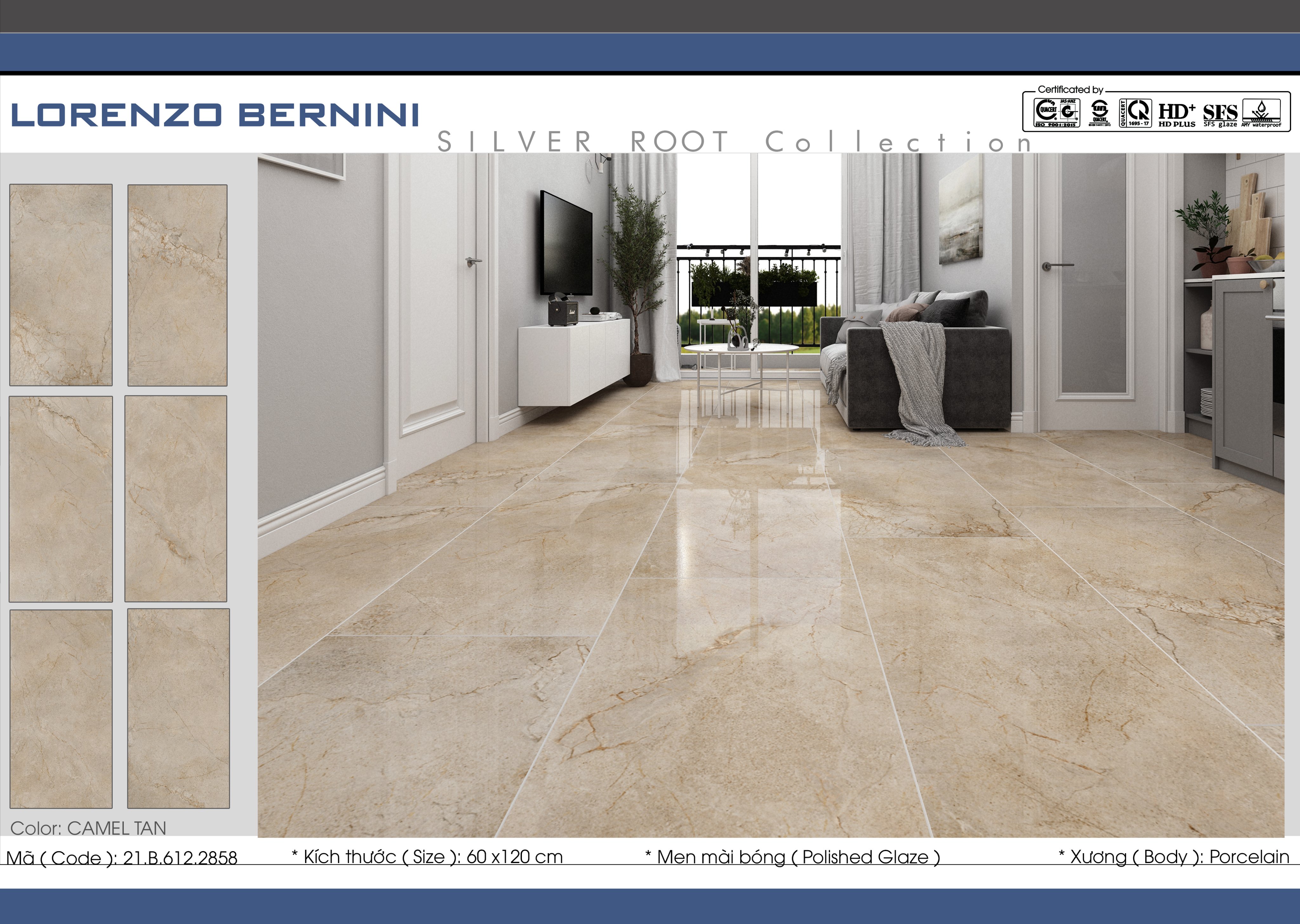 AMYGRES nghiên cứu, phát triển sản phẩm và vừa cho ra mắt bộ sản phẩm gạch ốp lát Silver Root kích thước 30x60cm, 60x60cm, 80x80cm, 60x120cm, xương porcelain, men mài bóng phù hợp với phong cách thiết kế nội thất đương đại, xu hướng lớn năm 2021 với những điểm nhấn ấn tượng.