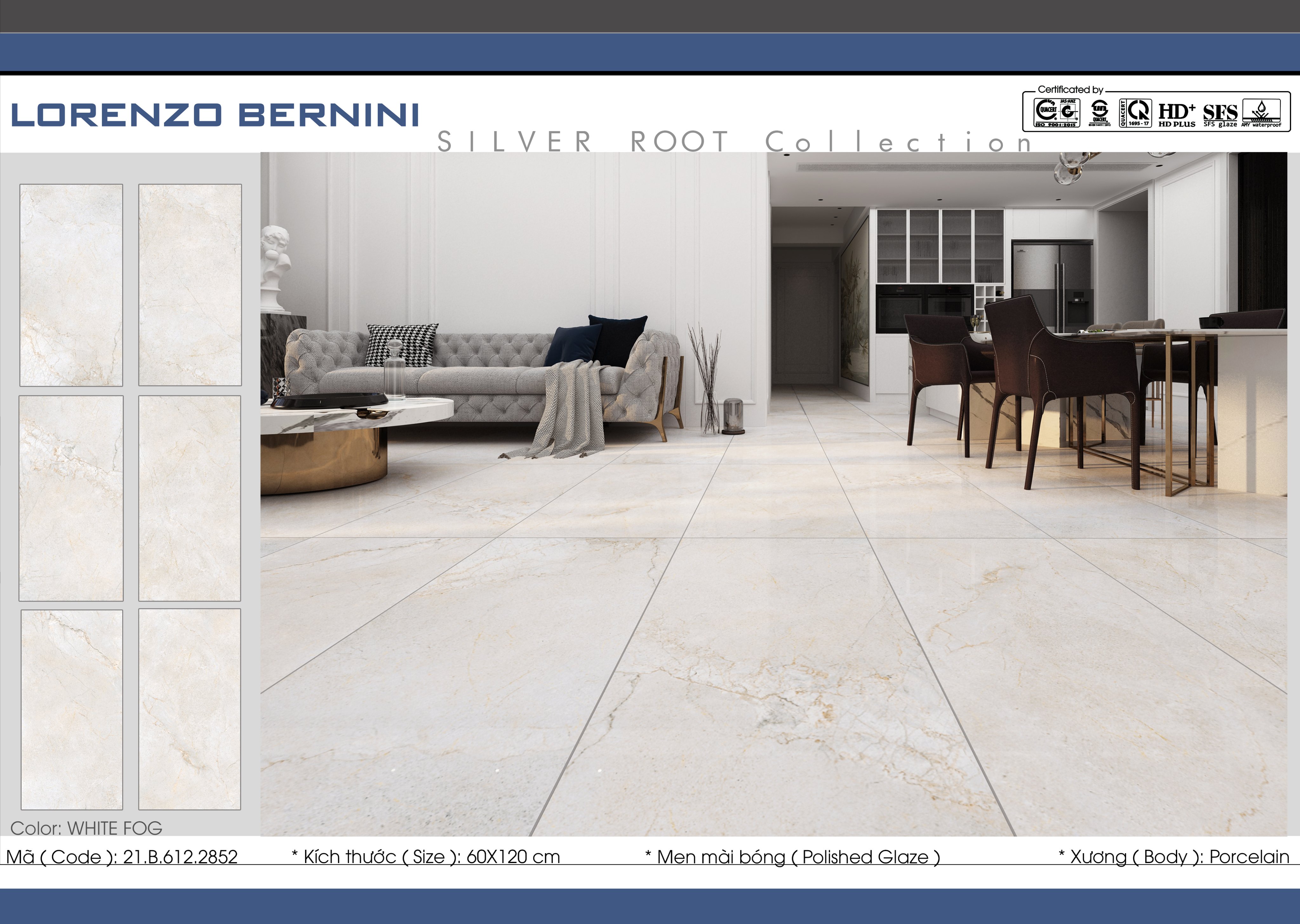 Silver Root mô phỏng vẻ đẹp quyến rũ của loại đá hiếm quý giá bậc nhất thế giới đến từ Ý. Các đường vân rất tự nhiên, tinh xảo, đường nét ngẫu nhiên, ít lặp lại đem đến không gian vô cùng tinh tế tạo ra vẻ đẹp sang trọng hiếm có.