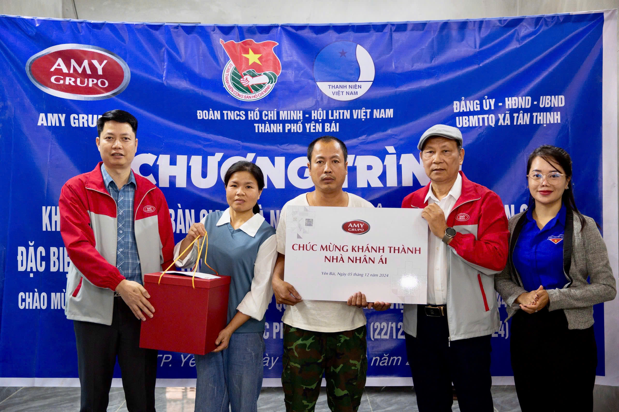 Hai ngôi nhà tình nghĩa được trao tặng cho gia đình nhà vợ anh Bùi Quang Biên nhân viên nhà máy AMYGRES tại thôn Khe Bốn, xã Yên Thái, huyện Văn Yên và anh Phạm Văn Thắng tại thôn Trấn Ninh, xã Tân Thịnh, TP. Yên Bái. Trước đó, cả hai gia đình đều đã chịu tổn thất nặng nề khi siêu bão Yagi làm sập hoàn toàn ngôi nhà của họ. Đây là 2 trên tổng số 6 ngôi nhà nhân ái từ nguồn trách nhiệm xã hội mà AMY GRUPO đã khởi công trong năm 2024.