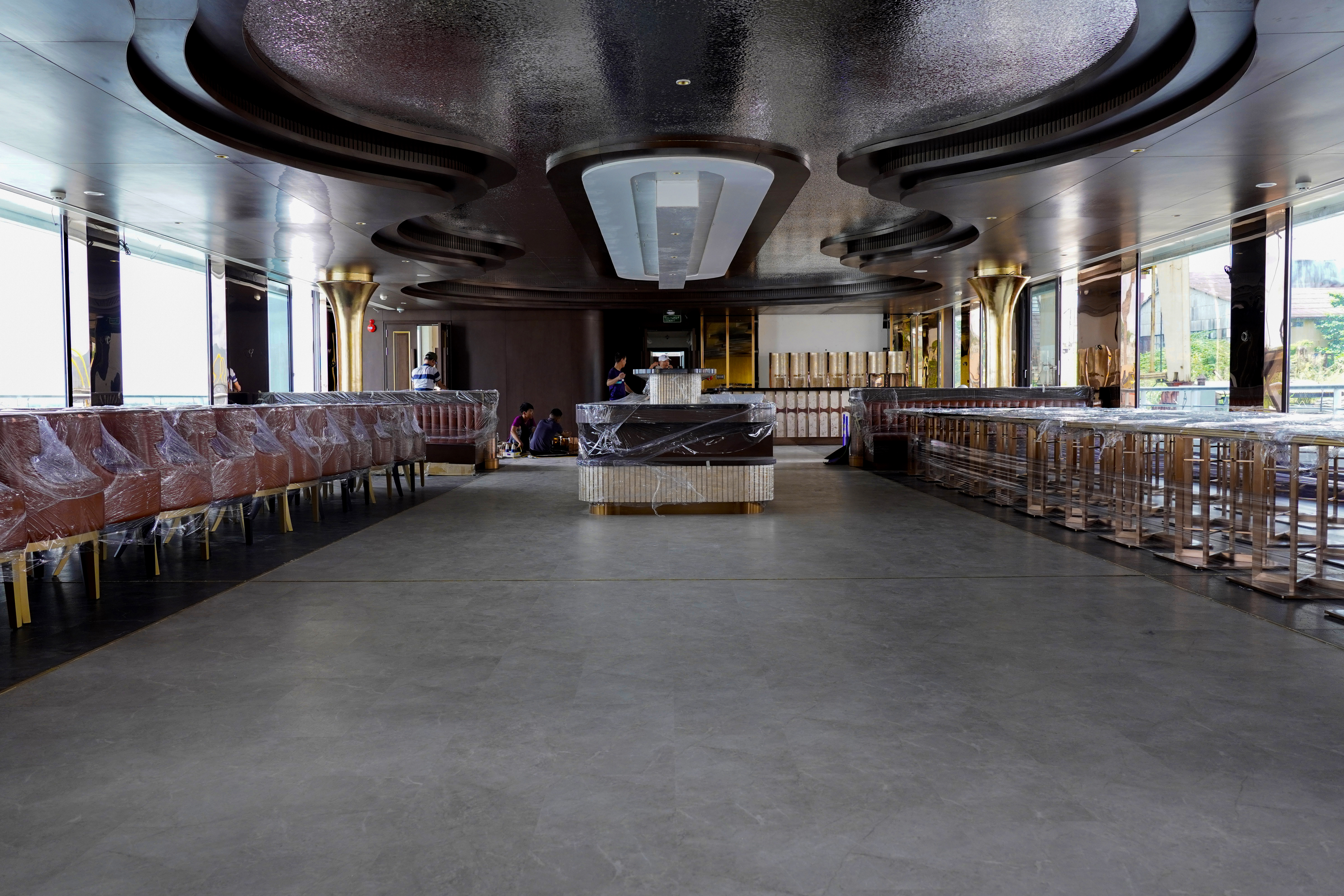 Khu vực nhà hàng thường diễn ra bữa tiệc sang trọng với nhiều vị khách đặc biệt. Sản phẩm sàn gỗ cao cấp chịu nước AMYGRES SPC đáp ứng đầy đủ các tiêu chí về kỹ thuật đồng thời đảm bảo tính thẩm mỹ, sự sang trọng đẳng cấp cho không gian nhà hàng của du thuyền.